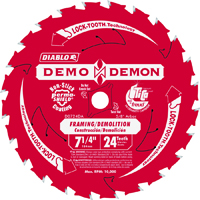 New Demo Demon Amped?, the ultimate framing and demolition saw blade for up to 10X cutting performance in intense applications. This 7-1/4 in 24 tooth blade includes a new industry-first tooth grind sequence, Tracking Point Amped? that is specifically designed to provide extreme durability and effortless cuts, even when cutting abrasive materials such as shingles, bolts or nail-embedded wood.
