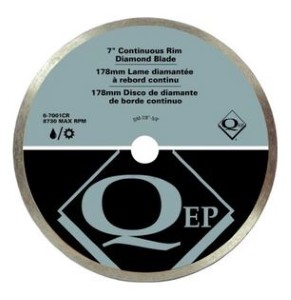 The QEP 6-7001CR 7 in. Continuous Rim Diamond Blade provides accurate cutting with minimal chipping. Diamond blade for long-lasting performance is specifically engineered for cutting ceramic tile. General purpose blade for wet or dry cutting. Exact specifications assure the user a wobble-free blade that produces smooth and precise cuts. Blade specifications: 7 mm Rim Height; 7/8-5/8-DM Arbor Size; 8730 Maximum RPM.