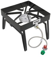 The Bayou Classic square propane burner is one of Bayou Classic's more popular propane burners. This propane burner's top measures 16 x 16, which is viewed as more stable than the round propane burners. The height of this propane burner measures 13 in tall. The needle valve on the square propane burner gives you complete control over the amount of flame, so you can cook food or heat beverages properly. The Bayou Classic square propane burner includes a high-pressure regulator.