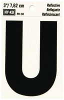 HY-KO RV-50/U Reflective Letter, Character U, 3 in H Character, Black