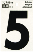 HY-KO RV-50/5 Reflective Sign, Character 5, 3 in H Character, Black