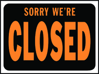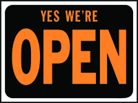 Brightly visible, fluorescent letters on a black background. Durable plastic, weatherproof. Sign states "STORE HOURS", with slots to write in hours of operation.