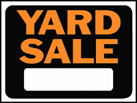Brightly visible, fluorescent letters on a black background. Durable plastic, weatherproof. Sign states "YARD SALE".