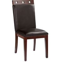 Invite contemporary dining style into your home with the Taylor Trace collection. This appealing group crafted of wood solids and 1/4 cut oak veneers in a rich brown finish, is centered around a 56 inch round table with nickel finished metal accents on the base. Coordinating side chairs boast plush upholstery, a curved back and decorative open wood back design. dining table dimensions:56"diameter x 30"h