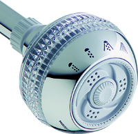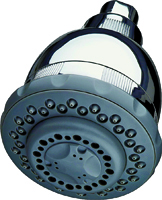 Fits standard 1/2 in shower fitting threads. Easy to install with included PTFE tape and a wrench. Chrome finish with ash gray shower face. 5 spray settings full body spray, soft rain spray, invigorating pulse, full body spray/rain combo and full body spray/pulse combo. Provides level 2 extra filtration through reduction of chlorine sulfur odors and scale. Bacteriostatic filter limits the passage or growth of bacteria that may already exist in the incoming water. Cartridge life of 6 months or 10,000 gal. NSF tested and certified. Culligan replacement cartridge model WHR-140 (SKU #7544281).