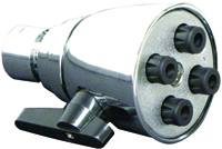 External lever easily adjusts spray from fast fine streams to a soft slower flow. Provides invigorating spray using 2.5 gpm. Includes the Power Boost Advantage, a series of brass restrictors which allows you to easily adjust the flow rate and performance of your shower, ensuring a great shower even in low-pressure. 1/2 in Female connection, installs easily on all standard shower arms. Solid brass construction is polished and chrome plated for high luster appearance.