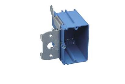 Non-metallic, non-conductive. Punch type knockout. Quickly connects. Square, fits commercial and residential requirements. For 600 V use in ceilings, floors and walls in commercial, industrial and residential buildings not more than three floors above grade. Colored in brilliant electric blue. 3 in x 2-1/4 in x 1-7/8 in. UL listed.