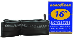 Bicycle Tube, Butyl Rubber, Black, For: 16 X 1-3/4 In To 2-1/8 In W Bicycle Tires