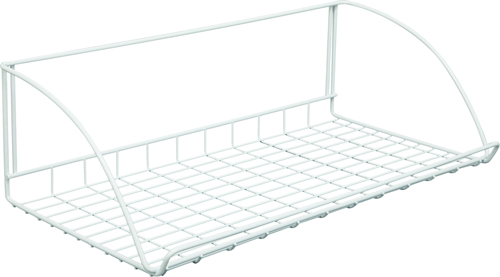 Ventilated wire shelf with space for hangers. Wire spacing provides storage for small items or books. Installation hardware included. Epoxy-coated steel material.