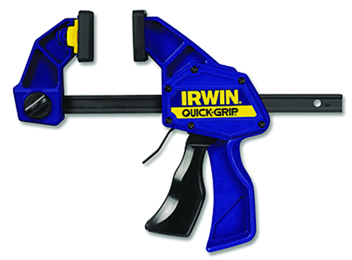 The IRWIN? QUICK-GRIP? SL300 one-handed bar clamp provides up to 300 lb of sustained clamping force that is evenly distributed through locking swivel jaws. It is constructed with an I-beam bar to reduce flexing and bowing and has a unique pistol grip design and quick-release trigger for one-handed operation. This clamp easily converts to a spreader with a few simple turns of a Quick-Change? screw.