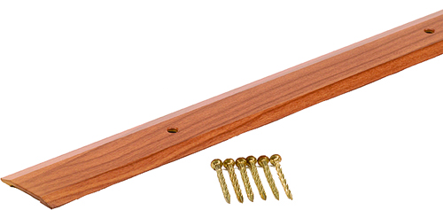 The 1-1/4 x 72 in Metal Decor cherry seam binder easily covers a seam or gap between two flooring surfaces of equal height. Seam Binders prevent carpet edges from fraying, vinyl floor seams from curling and create a smooth transition between different flooring surfaces. Seam binders are easily secured to wood and concrete floors with provided screw nails. For installation on concrete floors use wooden pegs.