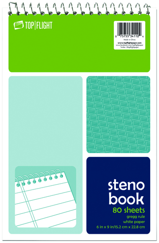 TOP FLIGHT 4600948 Steno Pad, 6 in L x 9 in W Sheet, Rule Sheet, 80-Sheet,